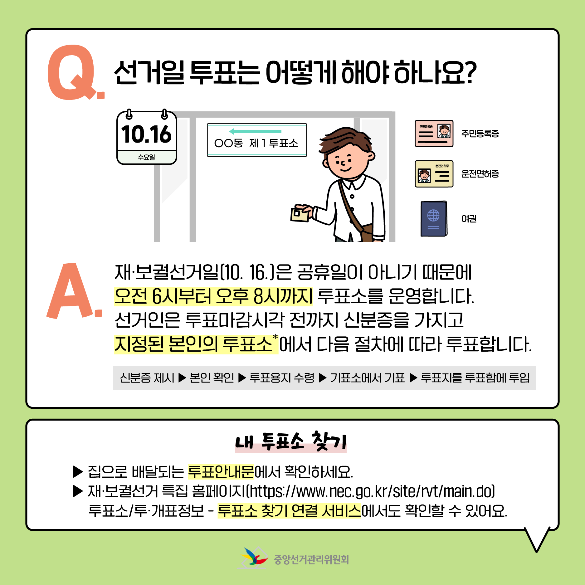 - 신분증 필수 : 반드시 신분증을 지참해야 하며, 신분증이 없으면 투표할 수 없습니다.