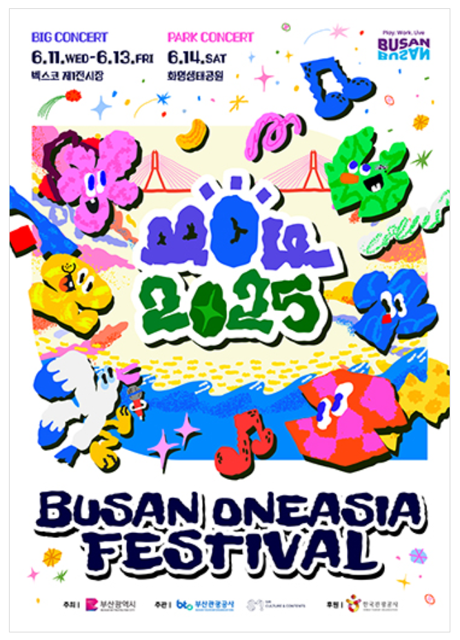 2025년 6월 11일(수)부터 6월 14일(토)까지 부산에서 개최되는 **부산 원 아시아 페스티벌(BOF)**은 아시아 최대 규모의 K-POP 축제로, 국내외 팬들의 뜨거운 관심을 받고 있습니다. 올해는 'BIG&BAND 콘서트'라는 테마로 다양한 아티스트들이 참여하여 부산을 음악으로 가득 채울 예정입니다.