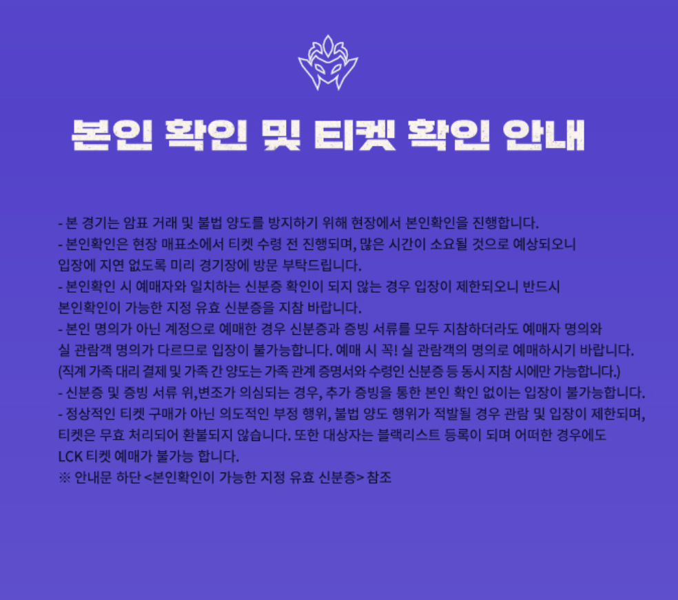 2025 LCK 경기를 관람하고 싶으신 팬분들은 티켓 예매 일정이 중요합니다. 티켓은 매 경기 시작 48시간 전에 예매가 가능하며, 인터파크 티켓(https://tickets.interpark.com/search?keyword=lck)에서 구매하실 수 있습니다. 예매는 선착순으로 진행되기 때문에, 미리 예매하는 것이 좋습니다.