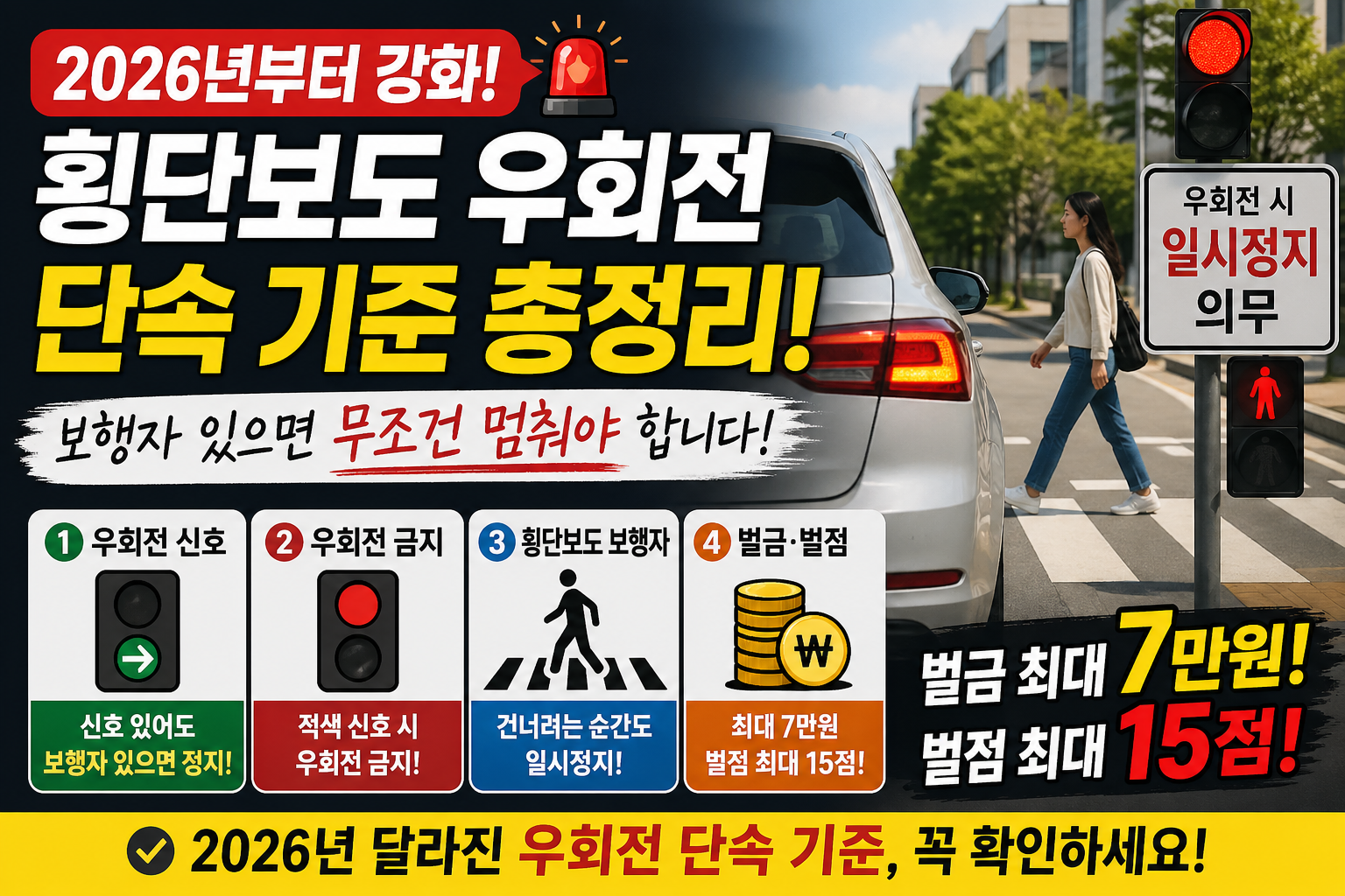 2026년부터 횡단보도 우회전 단속 기준이 훨씬 엄격해졌습니다.