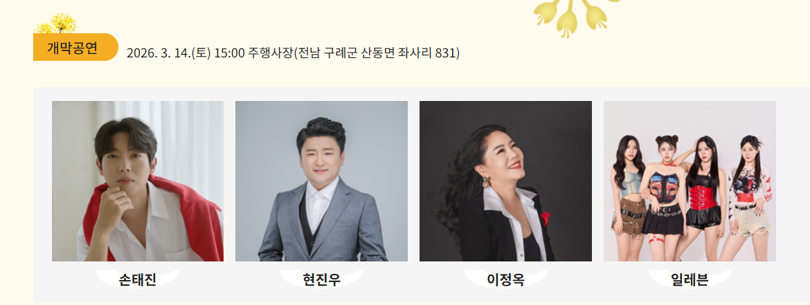 개막공연 손태진·현진우·이정욱·일레븐! 국내 최대 산수유 군락지로 봄 여행 떠나요!
