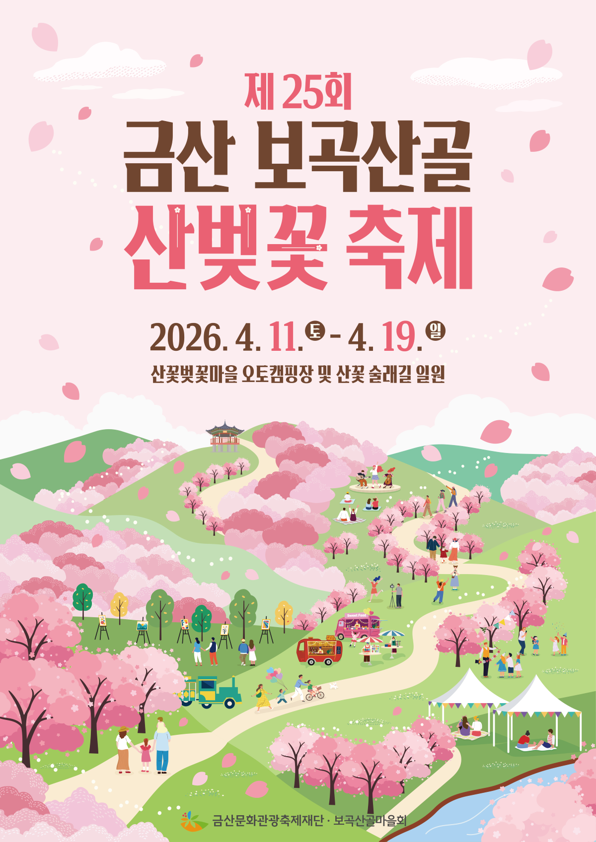 제25회 금산 보곡산골 산벚꽃 축제는 충남 금산군 군복면의 국내 최대 산벚꽃 자생 군락지에서 펼쳐지는 봄의 대표 축제입니다.