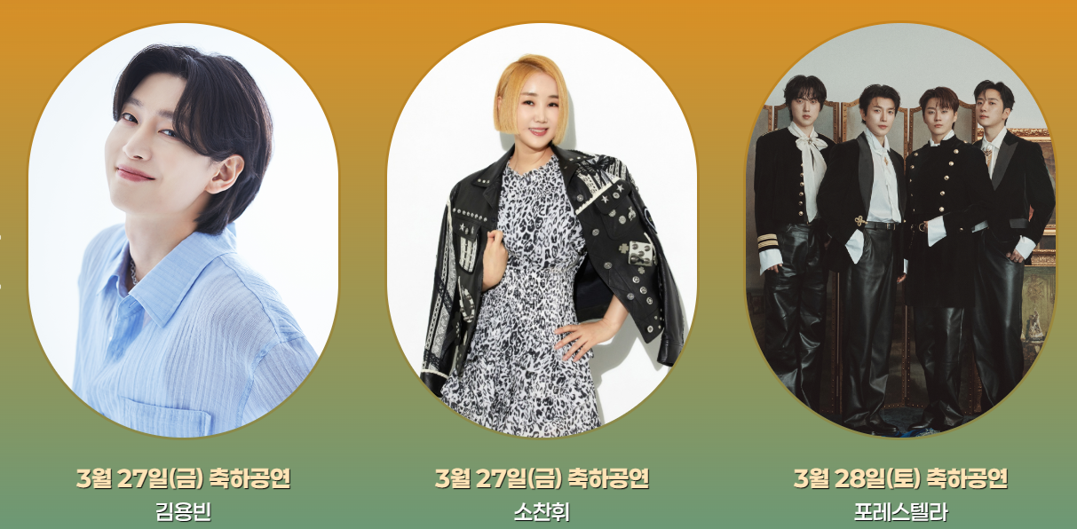 | 3월 27일(금) | 19:00~20:00 | 김용빈, 소찬희, 성민지, 성용하 | 개막식 축하공연 |