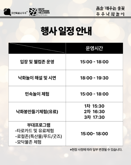 | 주최/주관 | (사)무주군관광협의회 · 무주안성낙화놀이보조회 |