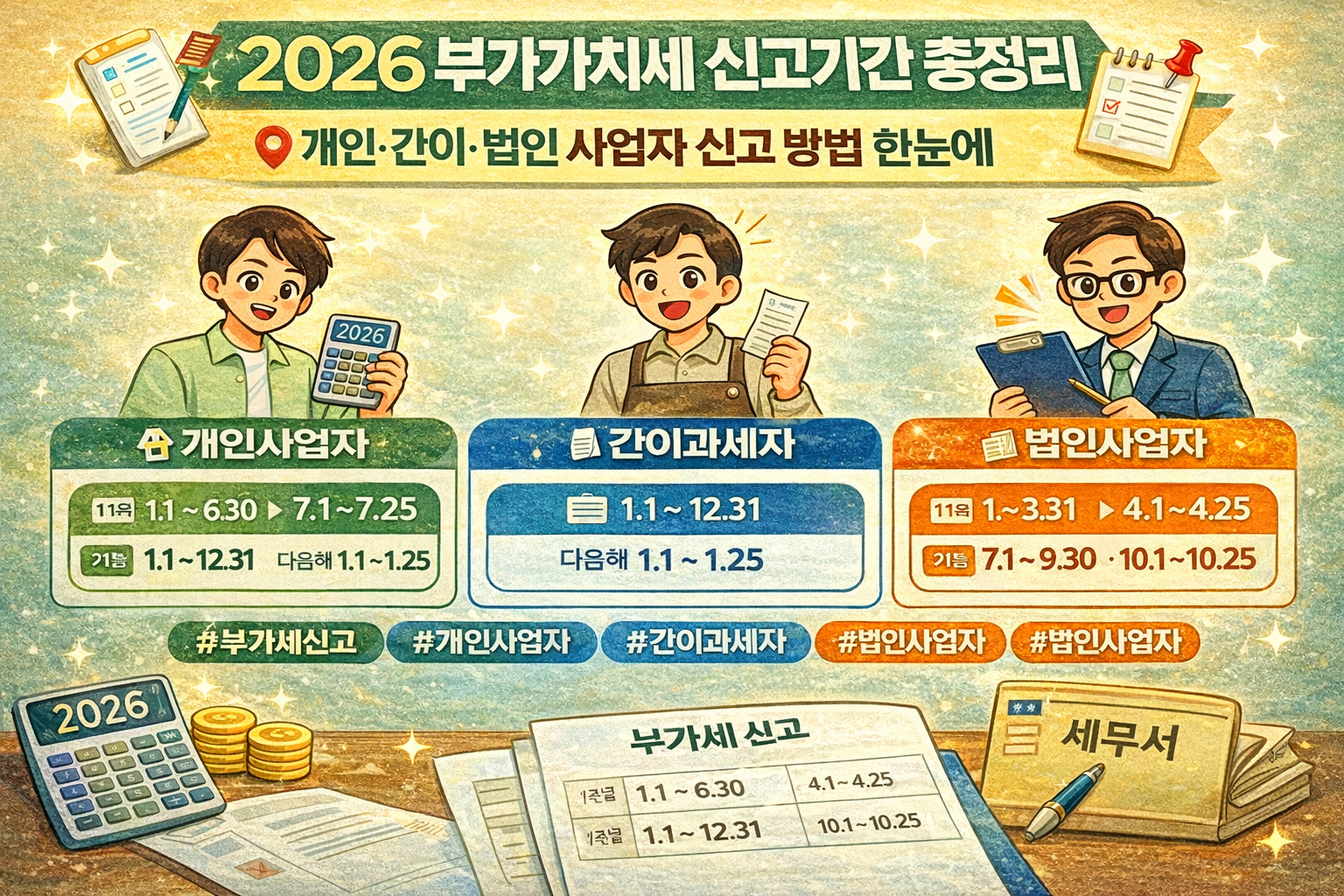 2026년 부가세 신고는 1월·7월 두 번, 유형별로 정확히 확인이 핵심입니다.