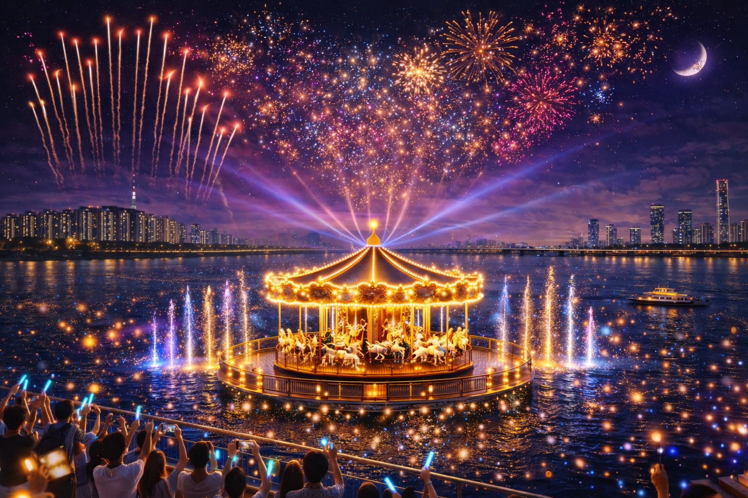 🎊 한강 위 회전목마, 빛과 불꽃의 판타지!