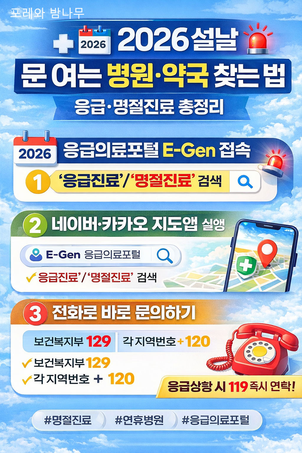 ✅ 2026 설날 연휴 문 여는 병원·약국 찾는 방법 총정리
