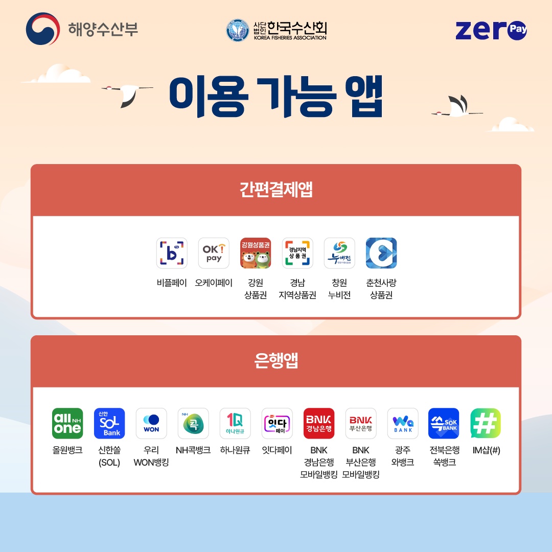 ✔ 국산 수산물을 주요 품목으로 취급하는 수산물 도·소매 업종 제로페이 가맹점에서 사용 가능