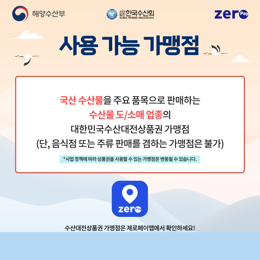 ✔ 사용 불가 : 일반 음식점, 주류 판매점 등 수산물 이외 업종
