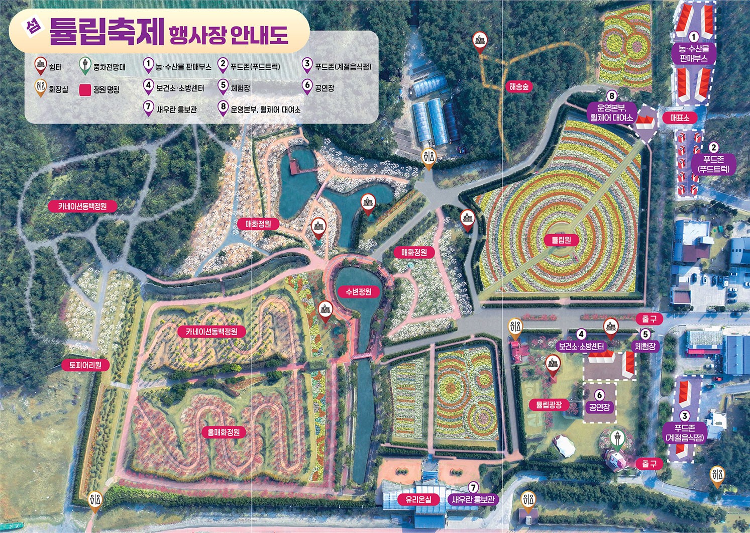 🎉 35종 87,425㎡ 튤립 + 홍매화 + 새우란 전시 + 다채로운 공연·체험!