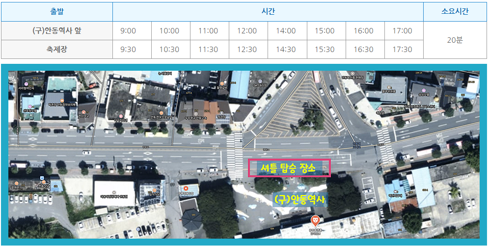 셔틀 2 : 구 안동역 앞 ↔ 축제장