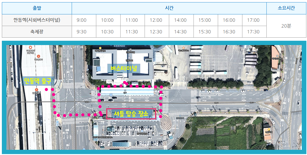 셔틀 1 : 안동역(시외버스터미널) ↔ 축제장
