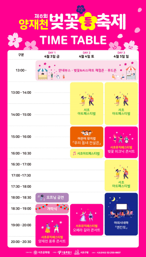 | 축제명 | 제8회 양재천 벚꽃 축제 |