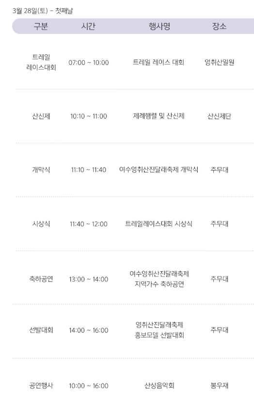 | 주최/주관 | 여수영취산진달래축제위원회 |