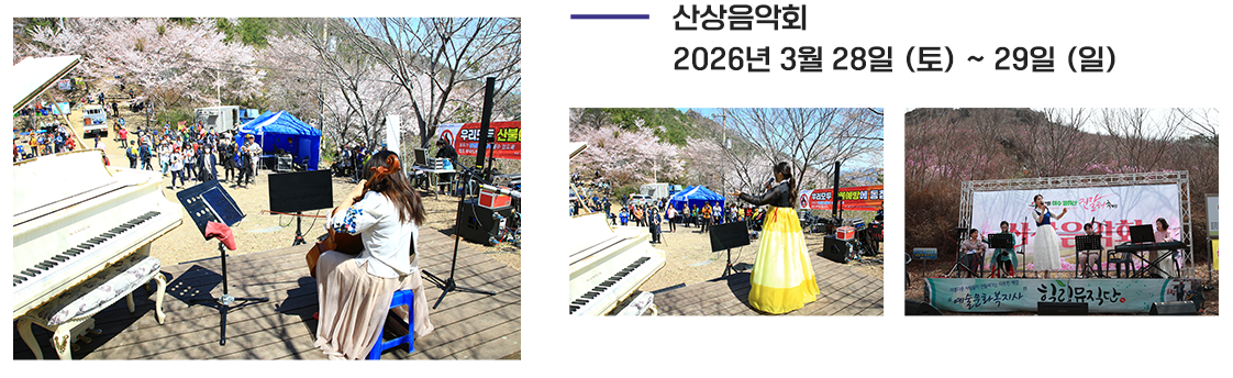 | 산상음악회 | 3월 28일(토)~29일(일) 10:00~16:00 | 봉우재 |