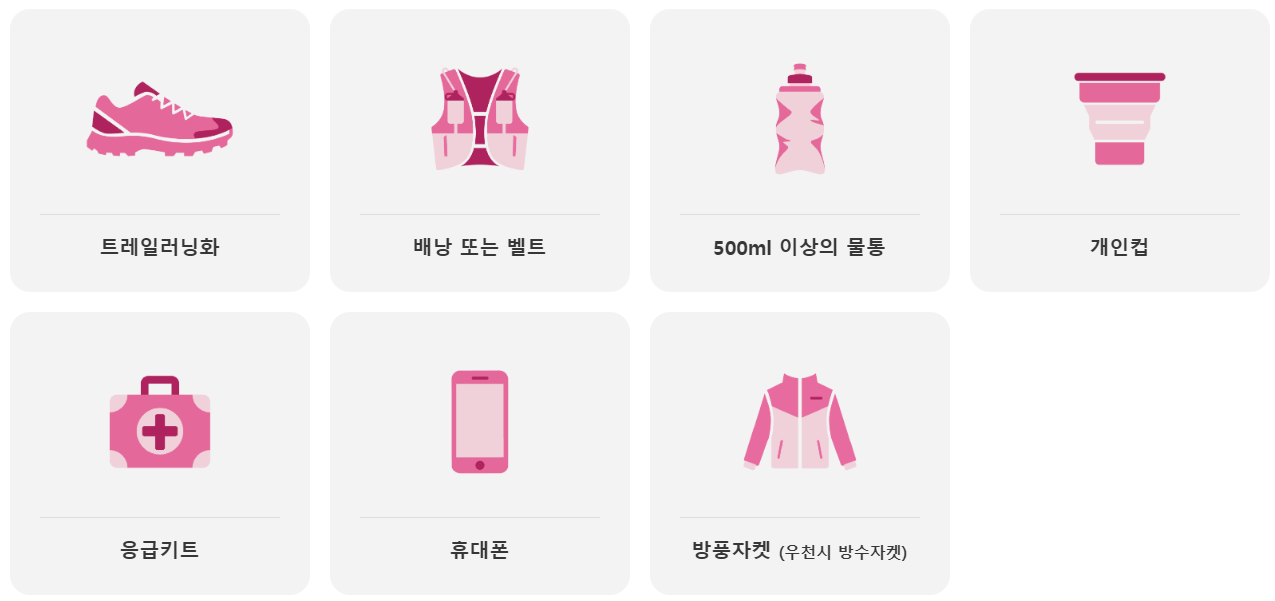 ⚠️ 필수 장비 미지참 시 배번(BIB) 수령 및 출발 불가!