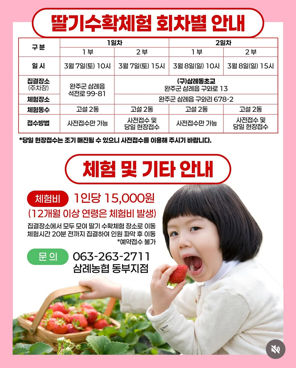 | 문의처 | 딸기수확체험: 063-263-2711 (삼례농협 동부지점) |