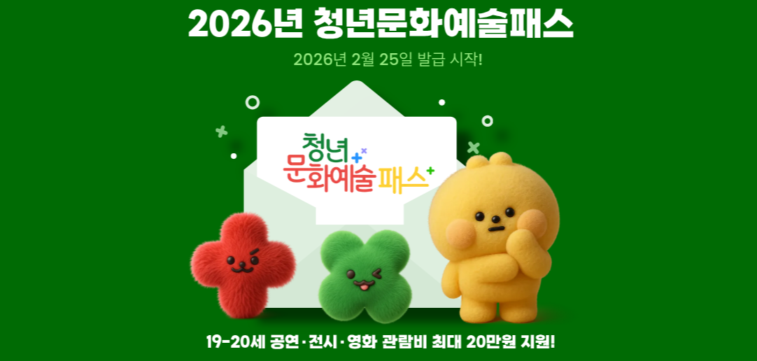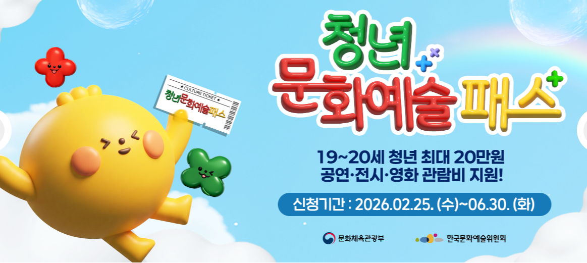2026 청년문화예술패스는 2006~2007년생 청년에게 최대 20만원 공연·전시·영화 관람비를 지원하는 정부 문화지원 사업입니다.