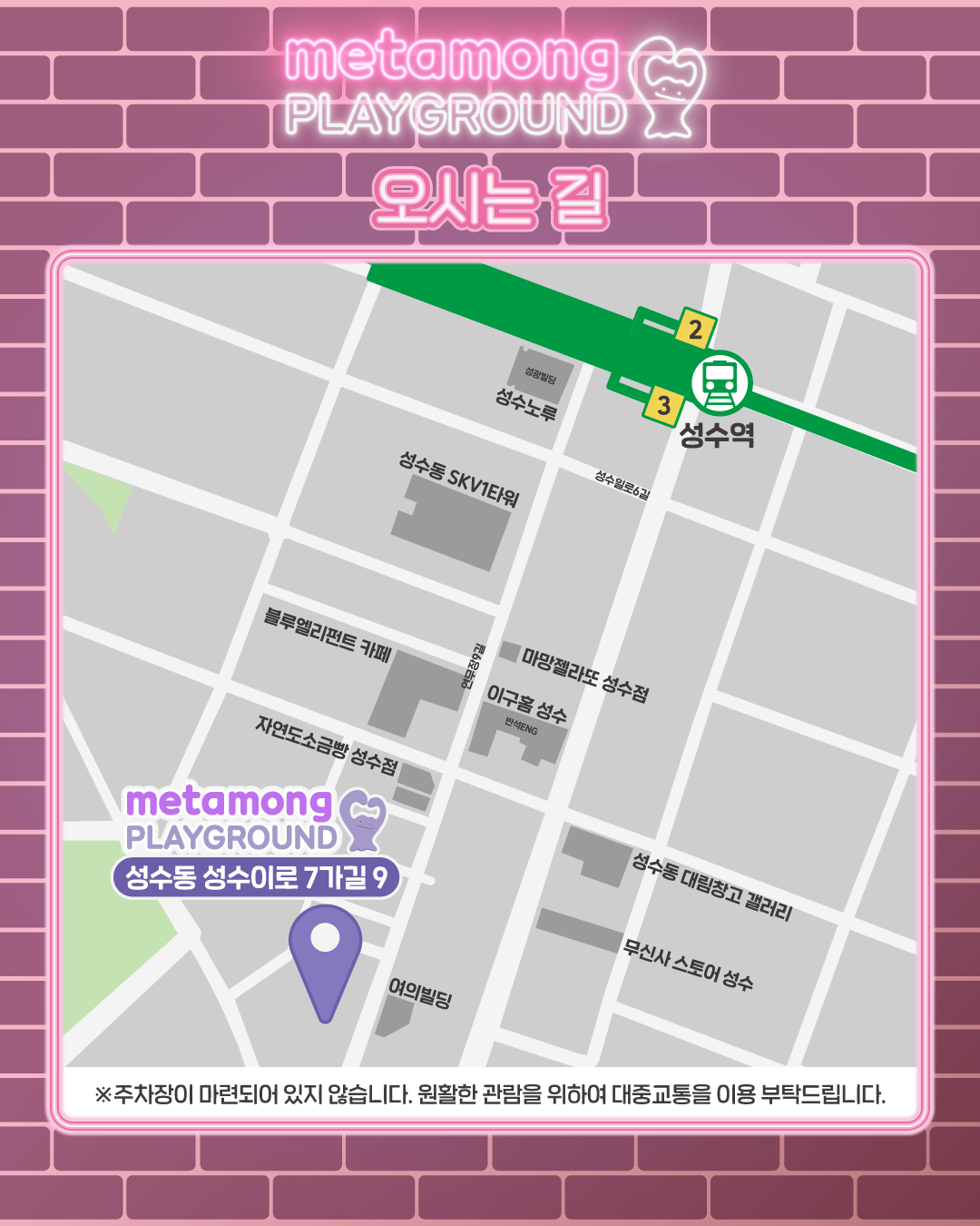 ✔ 주차 불가 → 대중교통 이용 필수!