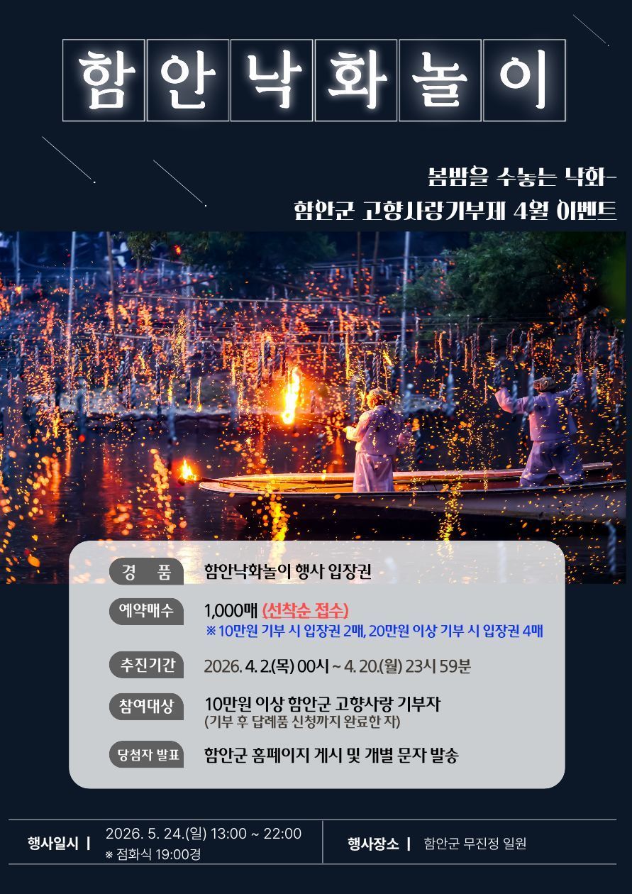 행사 문의는 문화유산담당관(055-580-2551), 고향사랑기부 문의는 세무회계과(055-580-2151)로 하세요.