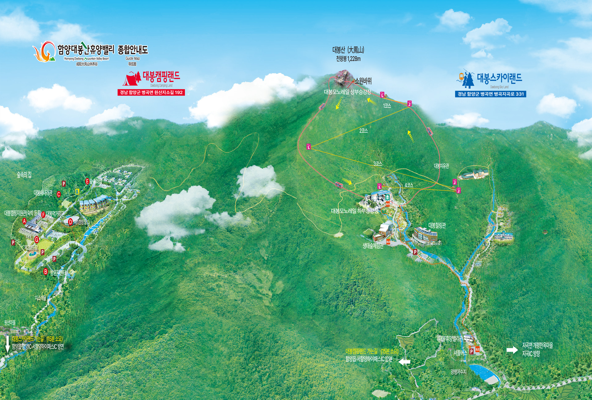 | 운영 시설 | 대봉모노레일, 대봉집라인, 대봉힐링관, 대봉캠핑랜드 |