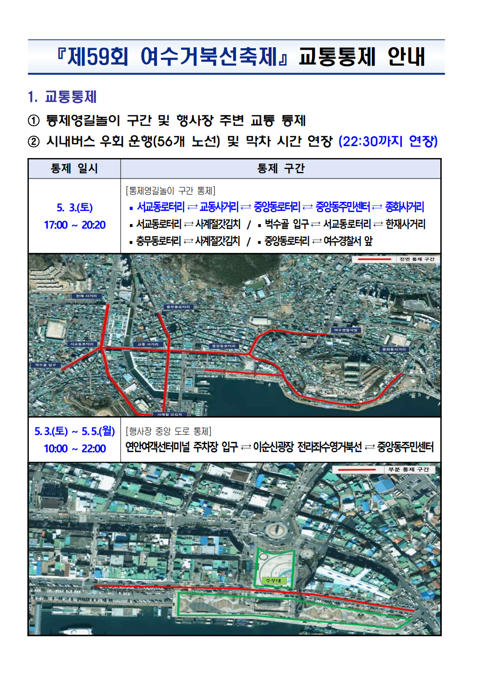 거북선 축제 교통통제 안내