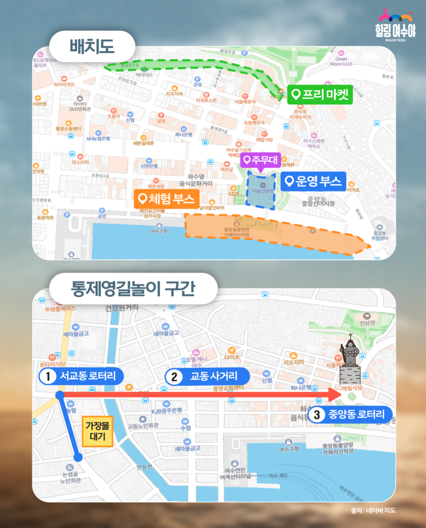 배치도 및 통제영길놀이 구간 안내