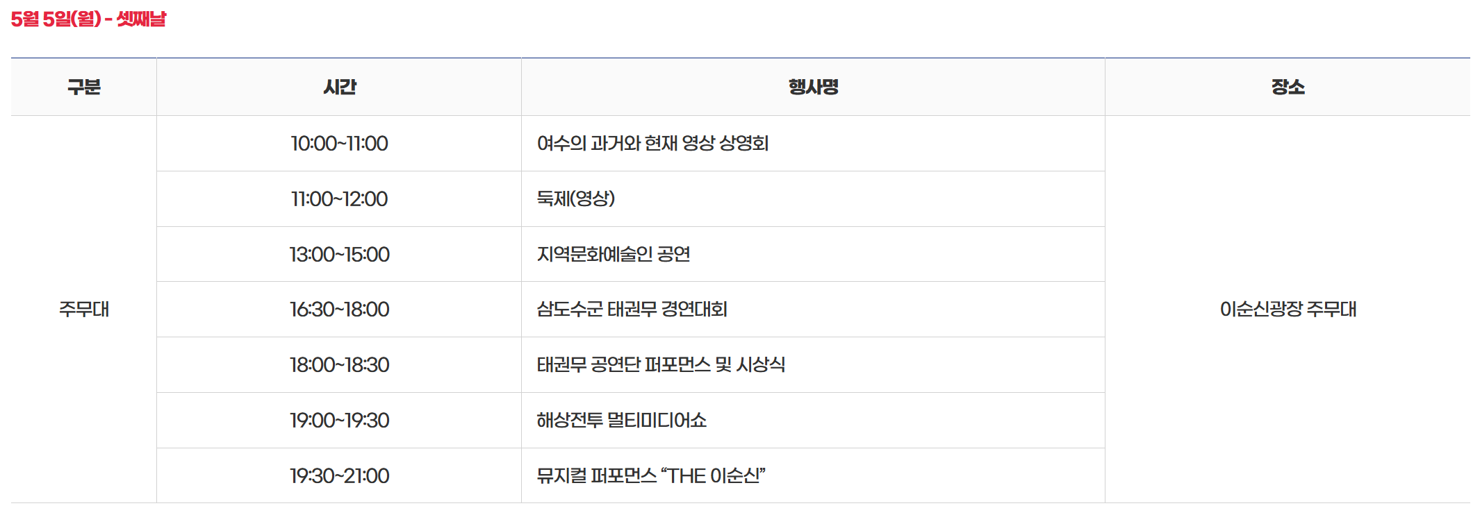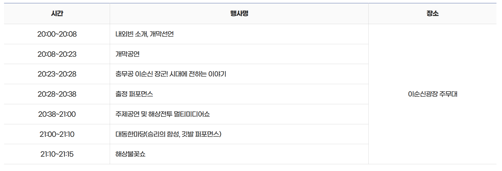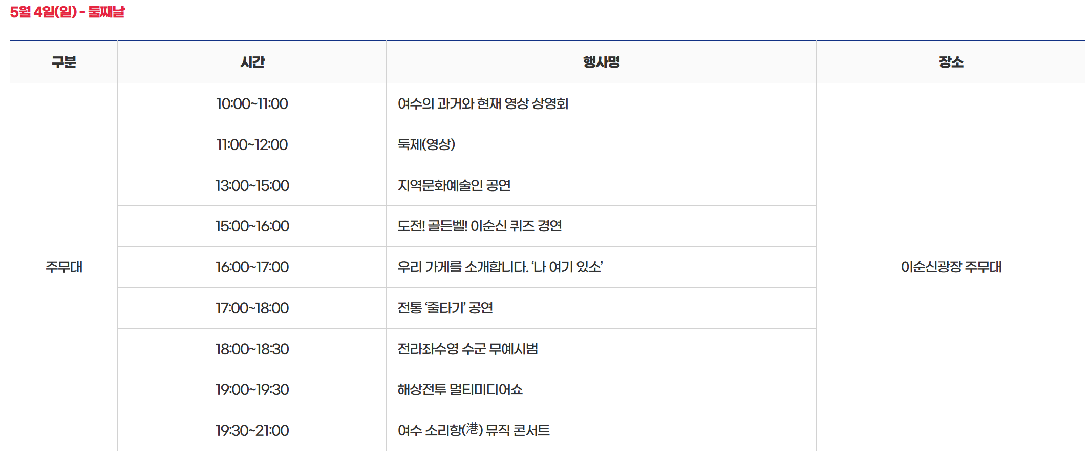 - 장소 : 이순신광장 주무대