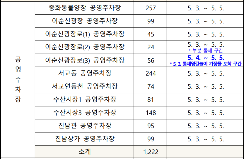 - 임시 주차장 운영 기간 : 2025년 5월 3일(토) ~ 5월 5일(월)