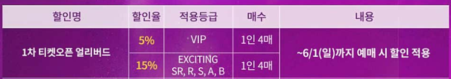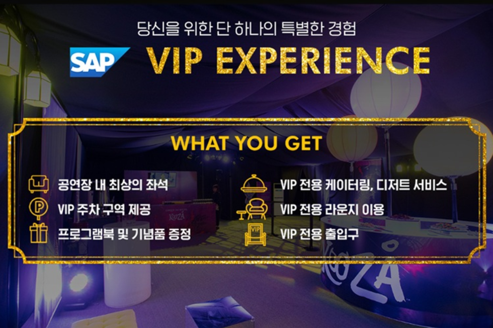 해당 좌석은 VIP 패키지 구성이 포함되지 않은 SR등급 좌석이므로, 예매 시 참고 부탁드립니다.