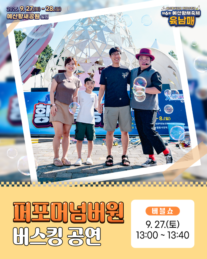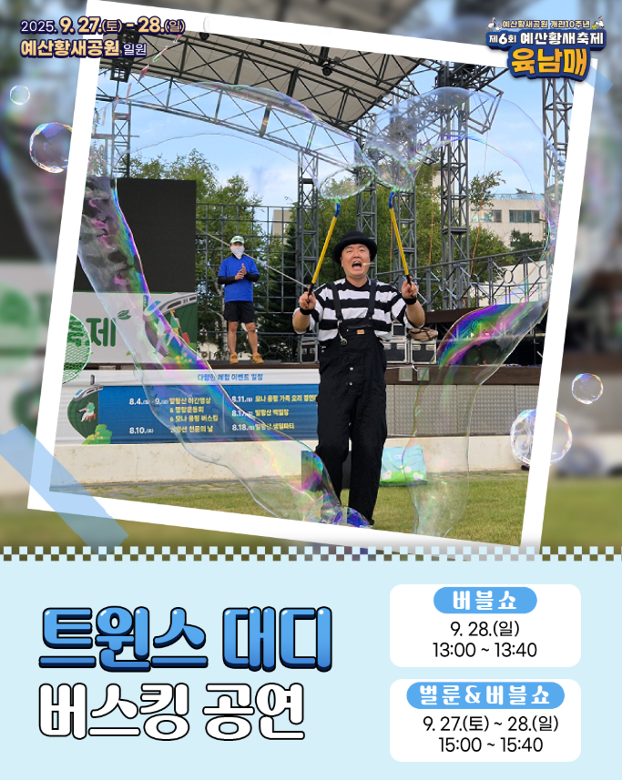 | 버스킹 공연 | 9.27~28 | 트윈스 대디, 퍼포머넘버원 버블쇼 |