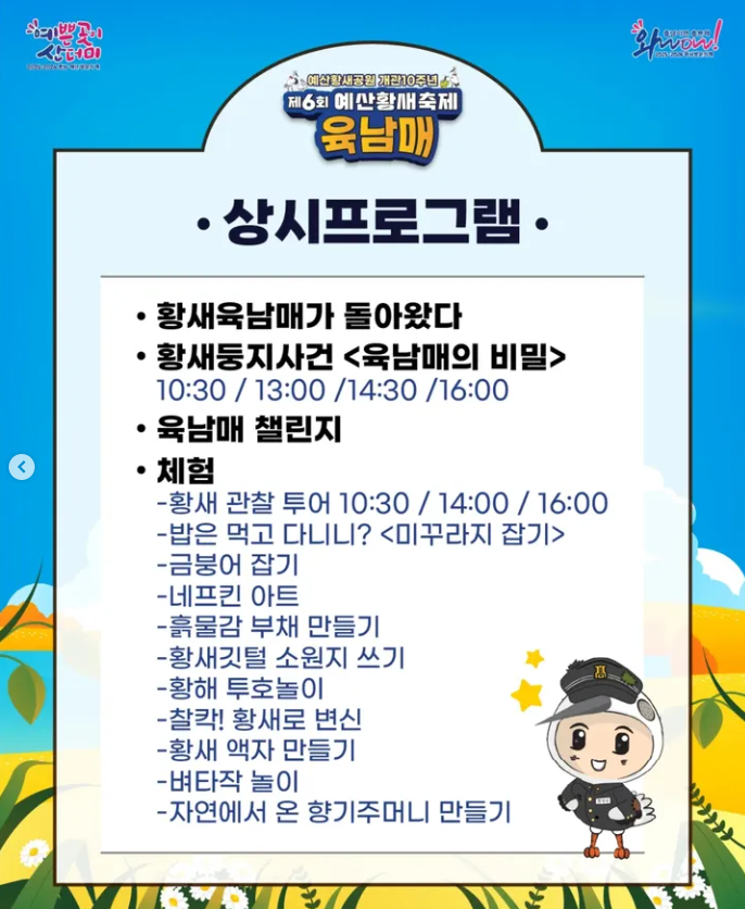 2025년 가을, 예산황새공원 개관 10주년을 맞아 제6회 예산황새축제가 열립니다!