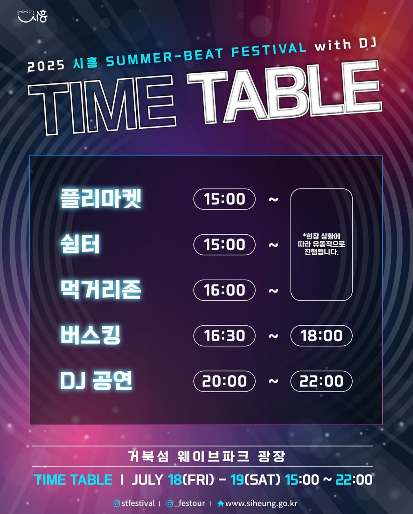 2025 시흥 SUMMER-BEAT FESTIVAL이 올해도 거북섬 웨이브파크 광장에서 화려하게 펼쳐집니다.