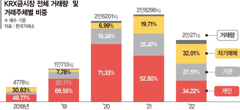 최근 몇 개월 동안 KRX 금시장에서의 거래량도 급증하고 있습니다.
