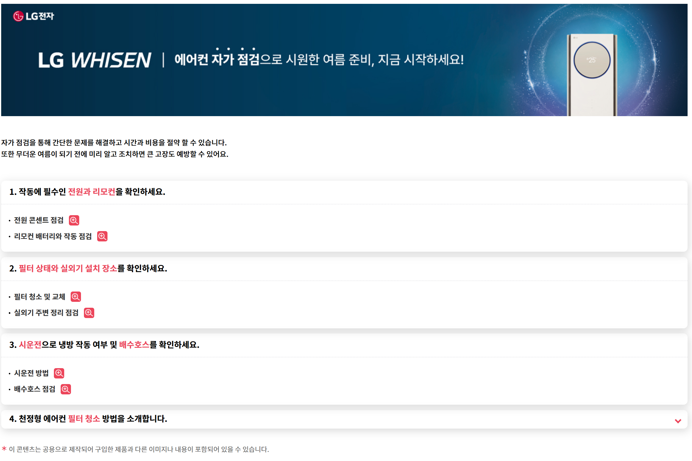 더욱 자세한 정보는 LG전자 고객센터를 통해 확인할 수 있습니다. 고객센터 전화번호는 1544-7777이며, 홈페이지에서도 다양한 정보를 제공하고 있습니다. 사전점검 서비스는 고객의 편의를 위해 마련된 프로그램이니, 꼭 신청하여 여름철 시원한 환경을 준비하시기 바랍니다.